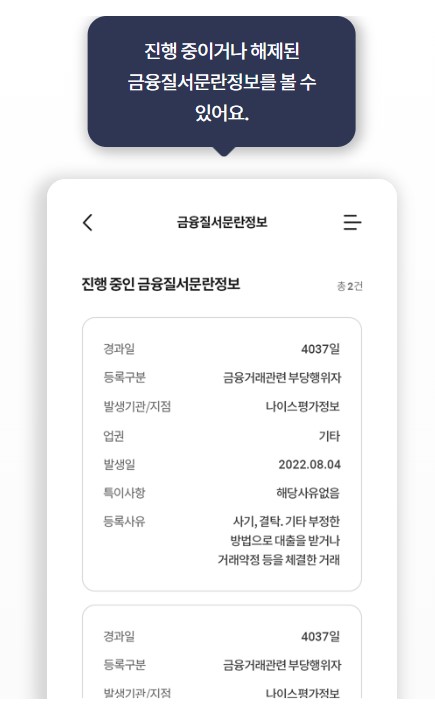 내가 금융질서문란자로 등록이 되었는지 확인하는 방법입니다. 요즘은 문제가 발생하면 대부분 톡이나 문자로 알림이 오는데 나이스지키미 홈페이지에서 바로 확인이 가능합니다.(회원가입필요)
