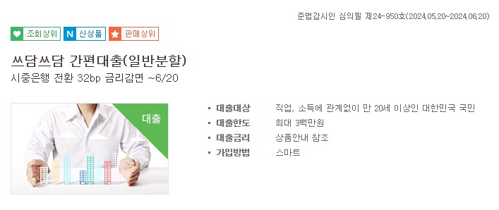 - 은행 방문 없이 모바일로 즉시 신청 및 실행이 가능한 소액 전용 신용대출이에요.
