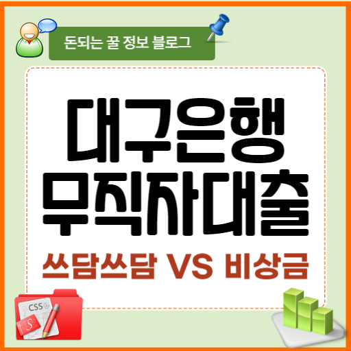안녕하세요! 오늘은 대구은행의 무직자대출 “쓰담쓰담 간편대출”과 핀크 제휴상품 “비상금대출”을 비교해 보려 해요.
