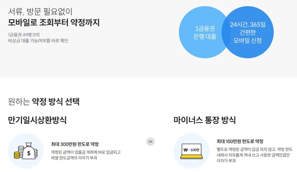 - 만기일시상환과 마이너스통장 방식을 선택할 수 있어요.