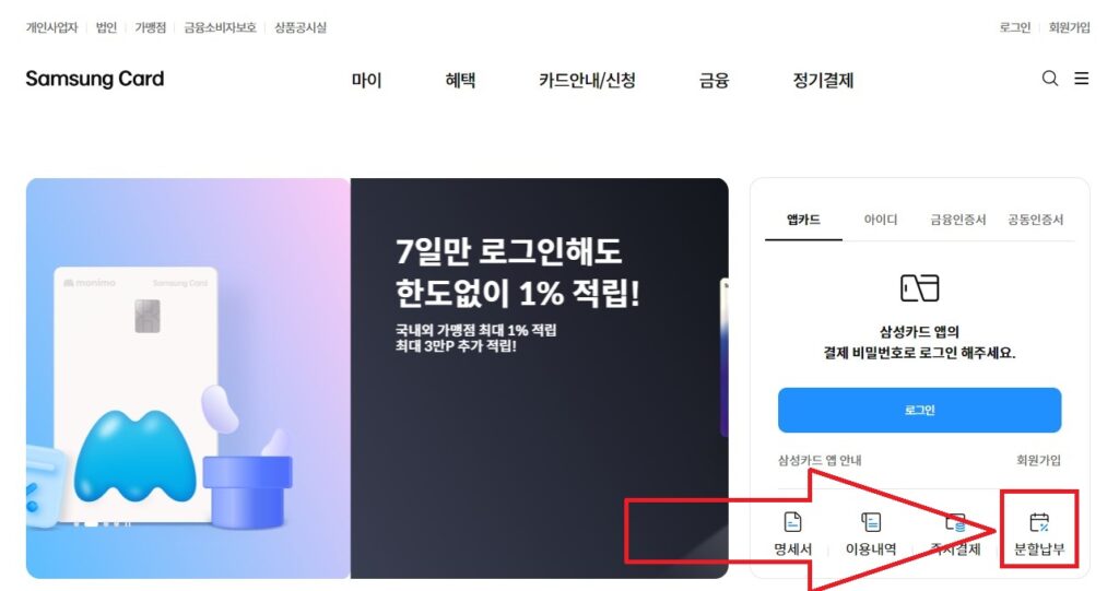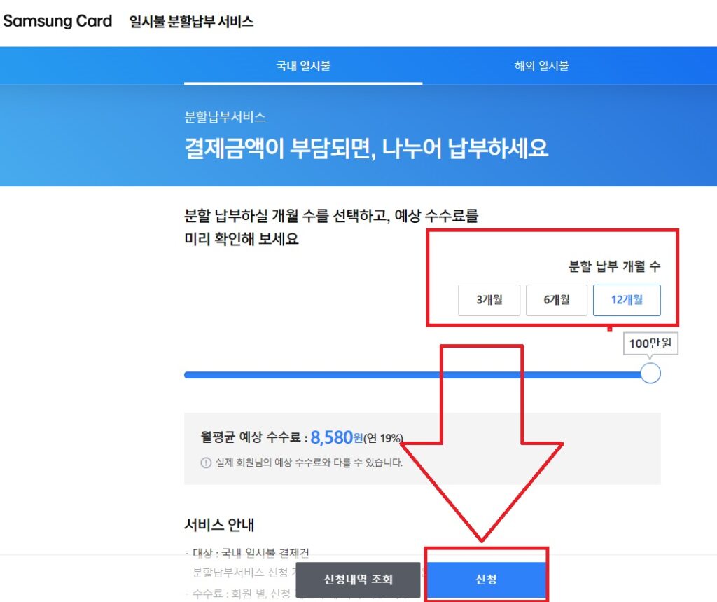 삼성카드 고객은 앱이나 홈페이지(웹/pc)에서 간편하게 “일시불 분할납부 서비스”를 이용할 수 있는데요 단, 이자율이 매우 높기 때문에 장단점을 잘 따져서 유리한 금융상품을 선택하는 것이 좋습니다.