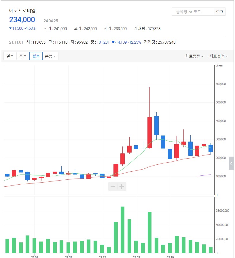 에코프로비엠 월봉 차트-주가전망