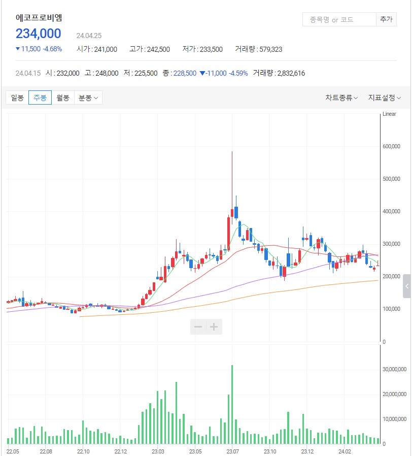 에코프로비엠 주봉 차트-주가전망