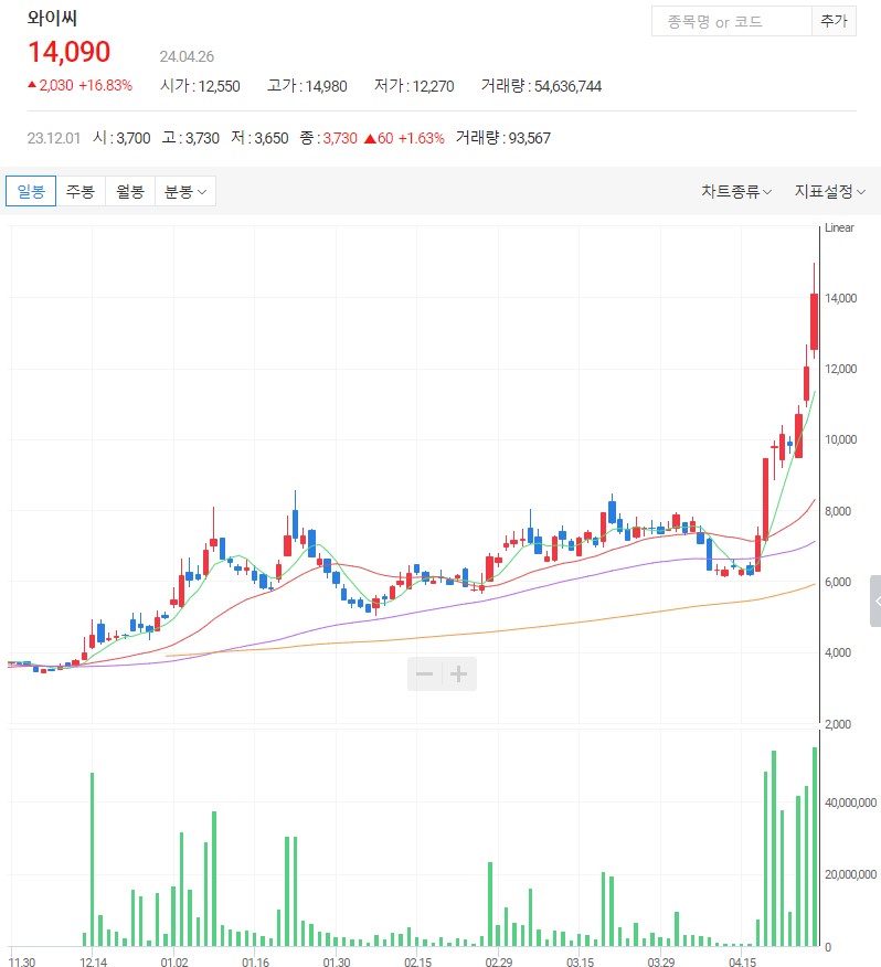와이씨(232140) 2024년 4월 26일 주가 상황 및 전망