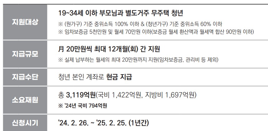 - 12개월 분(월 최대 20만원) 최대 240만원 이내로 지급(살제 월세 범위 내)