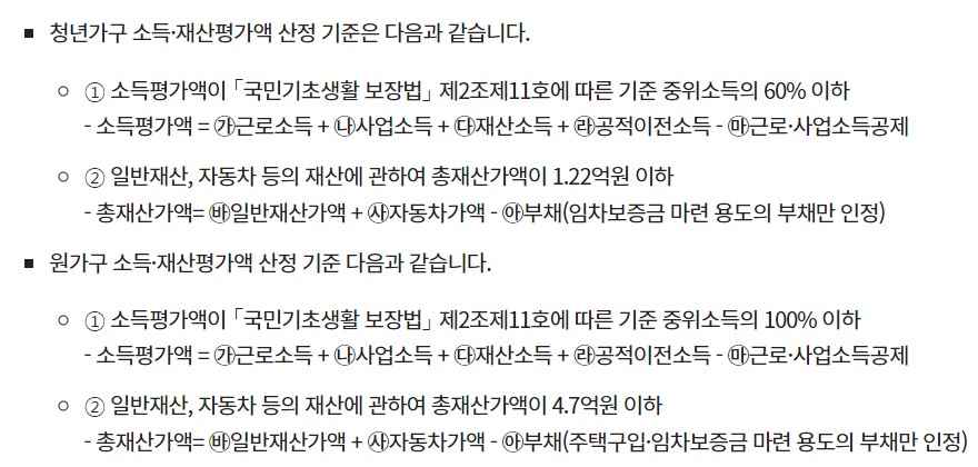 여기에 해당하면서 원가구(청년독립가구+1촌이내혈족-부,모)소득이 중위소득 100% 이내여야 합니다.